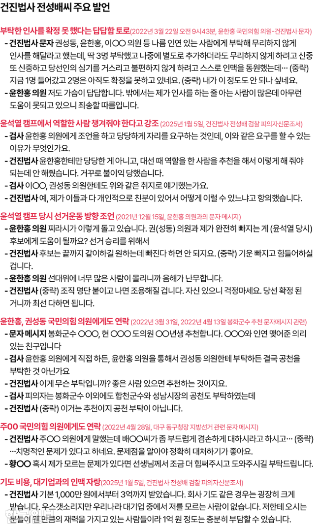 그는 윤 전 대통령과의 친분을 과시하며 국회의원들에게 공천 청탁을 한 것으로 알려졌습니다.