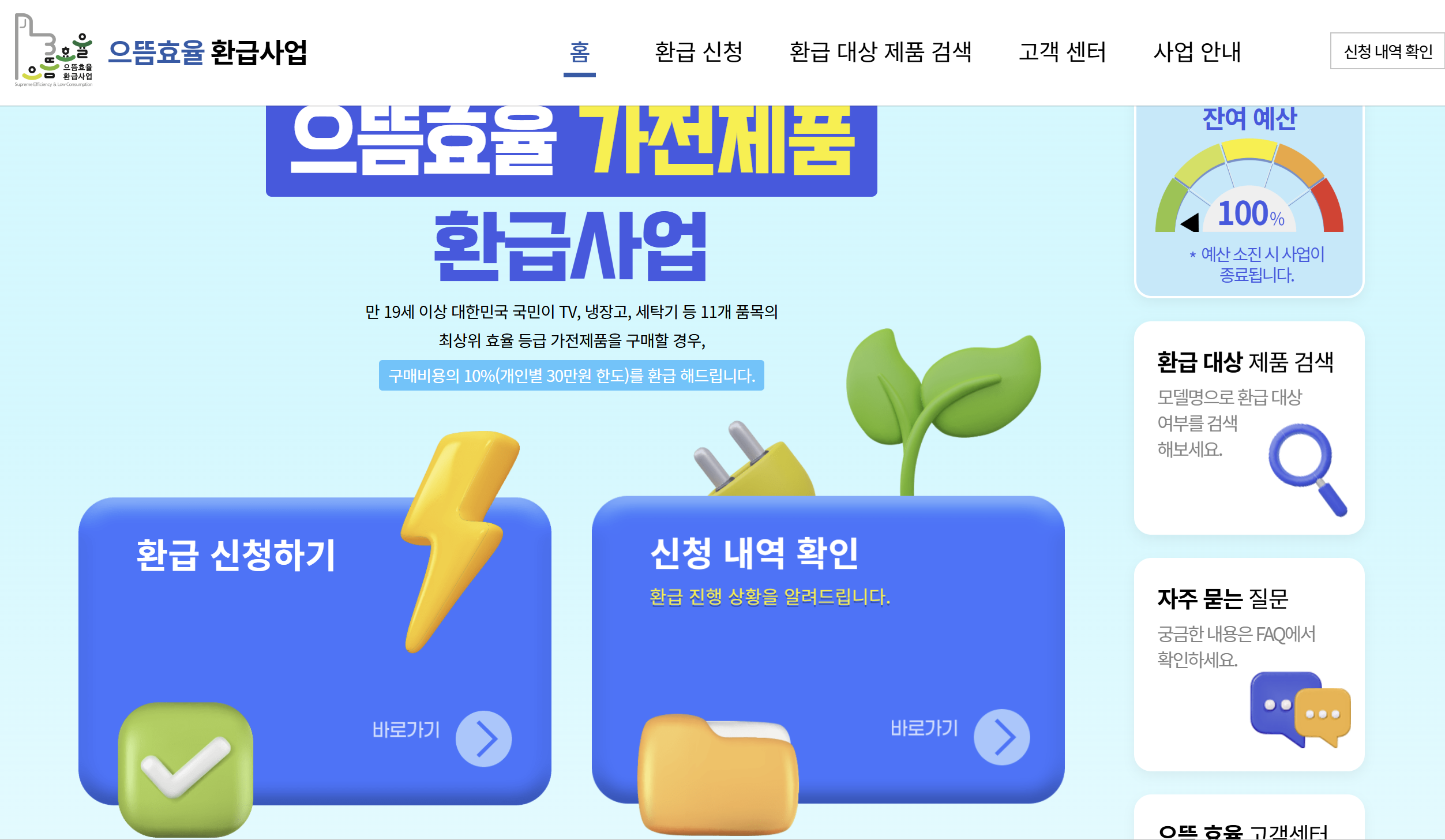 '으뜸효율 가전제품 환급사업'이 시작됐어요.