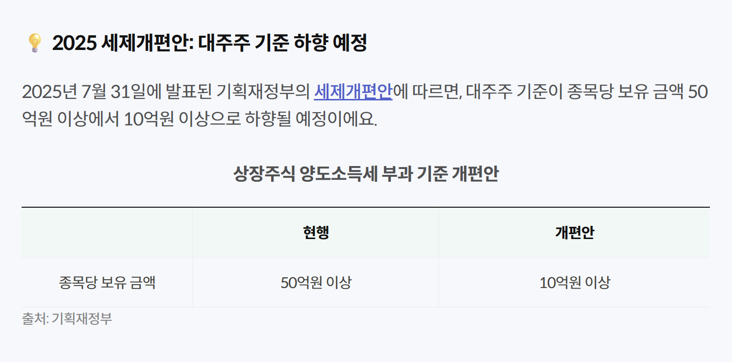 💡 2025 세제개편: 증권거래세율 인상 예정