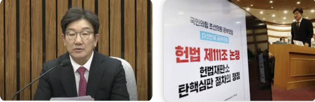 권성동 의원은 민주당이 발의한 내란·외환 특검법안에 대응해 국민의힘 자체 법안을 마련했으며,