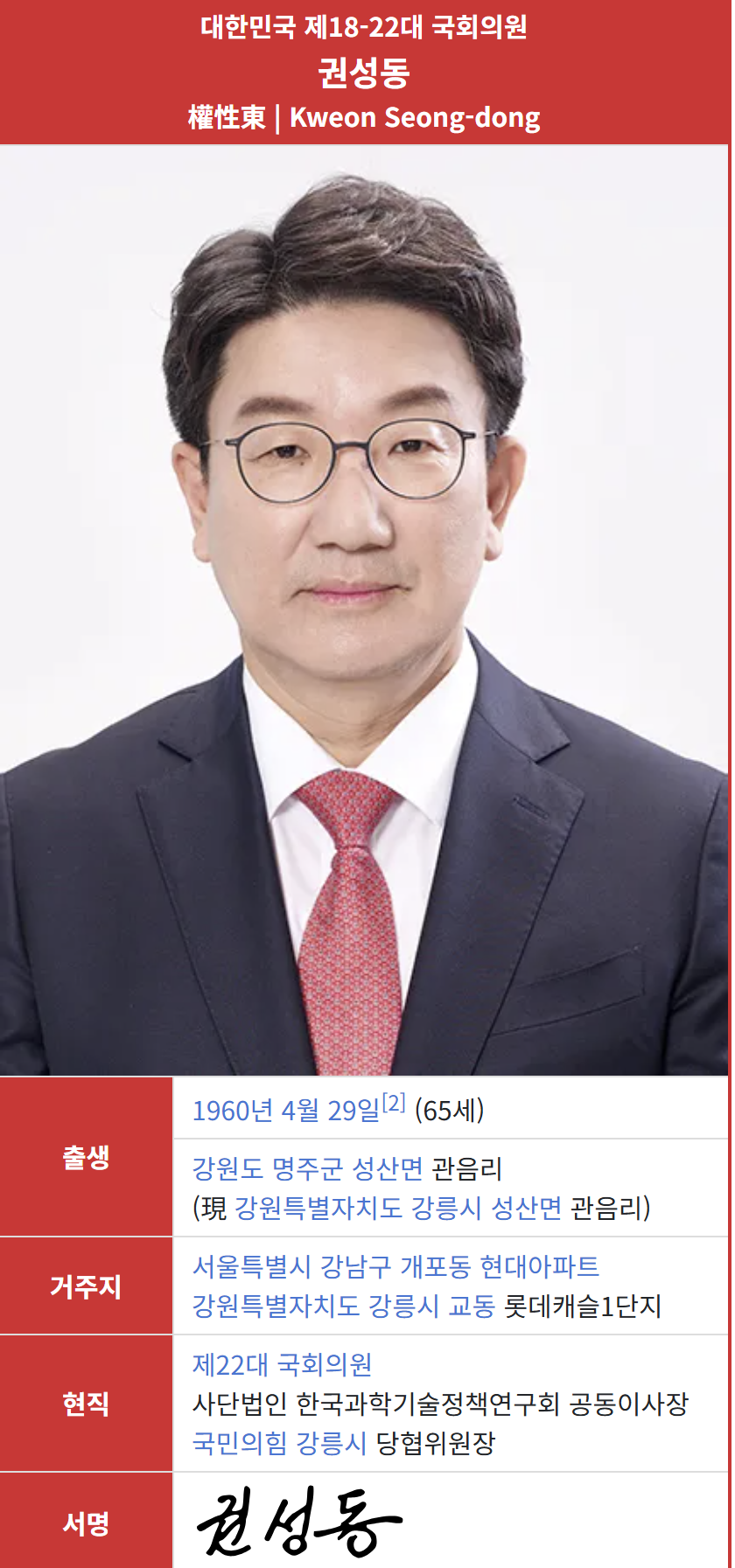 1960년 4월 29일, 강원도 명주군 성산면 관음리(현 강릉시)에서 태어난 권성동 의원은