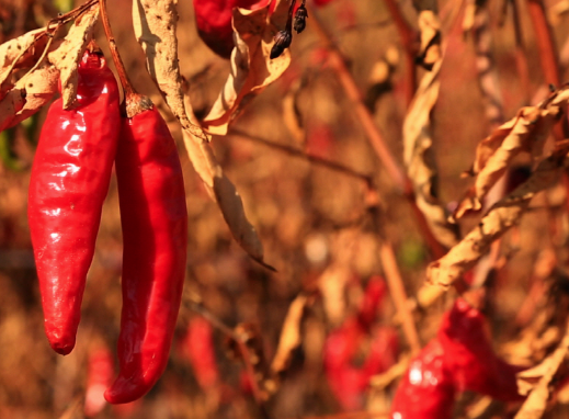 고추는 김장 김치 담글 때 없어서는 안 될 필수 양념이죠. 묵은 고춧가루보다는 그 해 수확한 태양초를 사서 직접 빻아 쓰는 게 색도 곱고 광택이 좋습니다. 고추는 외관상 껍질이 두껍고 햇빛에 껍질이 투명하게 비치는 게 좋습니다. 배추김치용은 씨를 섞은 채 중간 크기로 갈고, 깍두기용은 씨를 빼고 곱게 갈고, 총각김치용은 아주 굵게 갈아 사용합니다.