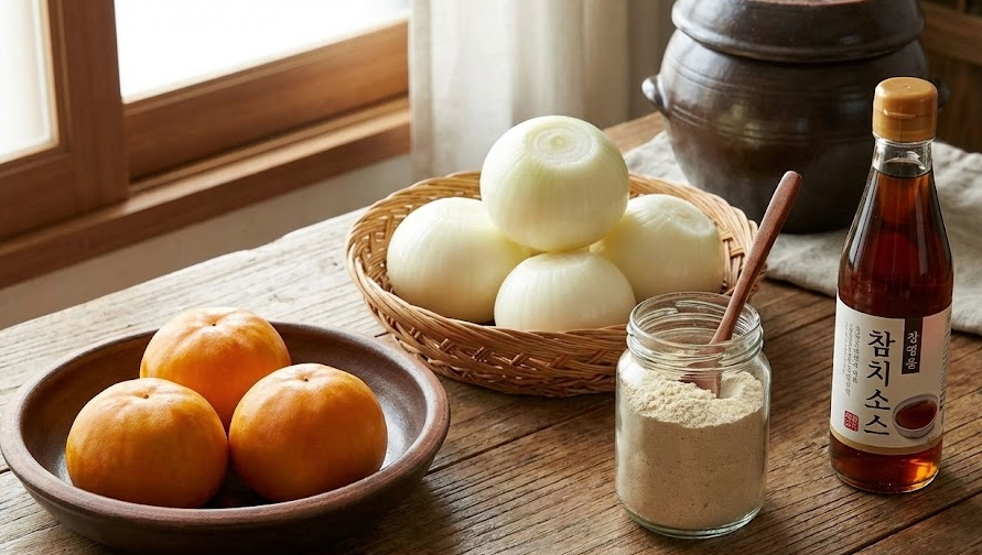 양파를 갈아 넣으면 천연 단맛과 깔끔한 감칠맛을 낼 수 있고, 홍시를 으깨 설탕 대신 양념에 사용하면 자연스러운 단맛을 낼 수 있다.
