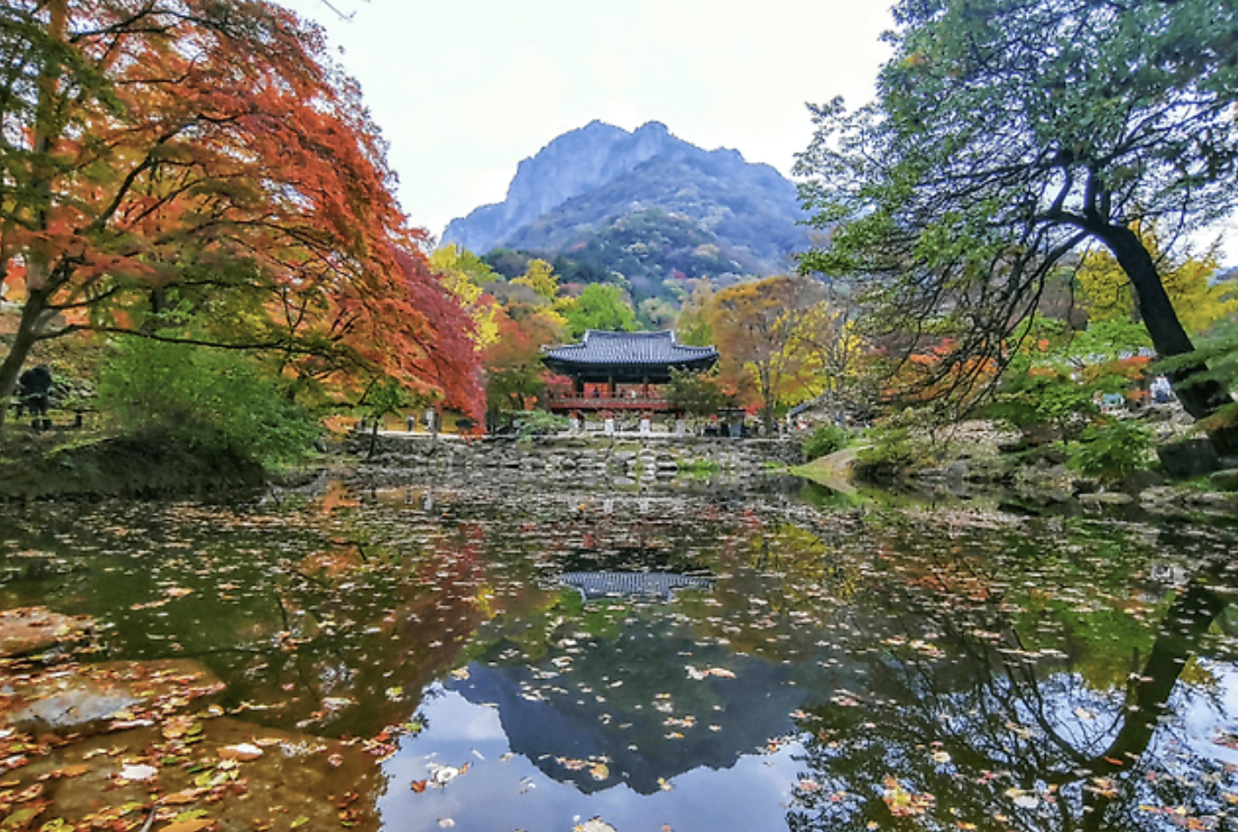 내장산의 포토존 1순위입니다. 정자에 날개가 돋아 하늘로 승천했다는 전설이 깃든 우화정은 잔잔한 연못 중앙에 자리 잡고 있으며, 주변을 둘러싼 붉게 물든 단풍과 함께 한 폭의 수채화 같은 아름다운 반영 풍경을 만들어냅니다.