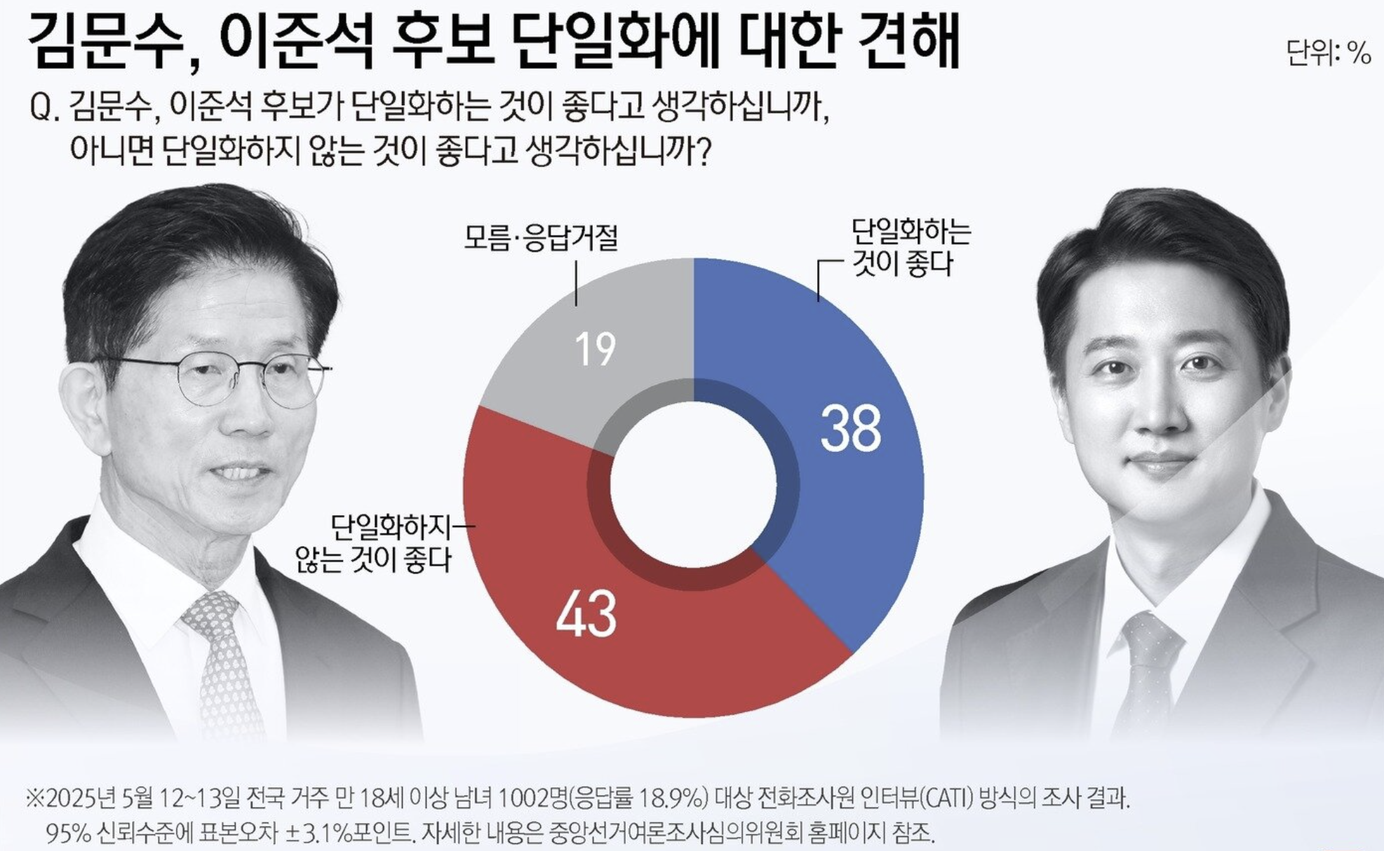 ]2025년 6월 3일 대선을 앞두고, 국민의힘 김문수 후보와 개혁신당 이준석 후보 간의 단일화 논의가 주목받고 있습니다.