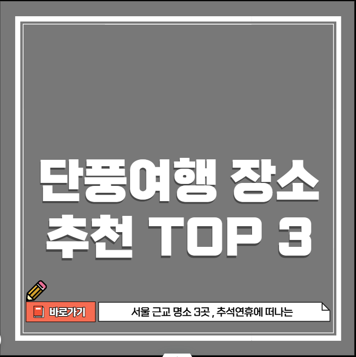 오늘 여행톡톡에서는 9월에 미리 떠나는 서울 근교 단풍 명소 TOP3 에 대해 알아보도록 하겠습니다.