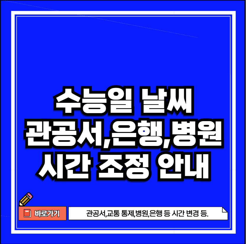 - 출근 시간 조정: 일반 시민들의 교통 혼잡을 줄이고 수험생 이동을 돕기 위해 관공서 및 기업체의 출근 시간이 오전 10시 이후로 한 시간 늦춰집니다.