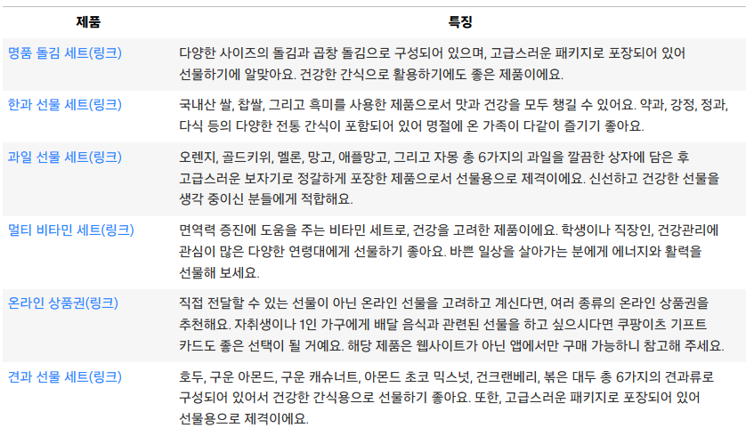 선물 고르는 기준 (건강, 실용성, 취향 존중 등)