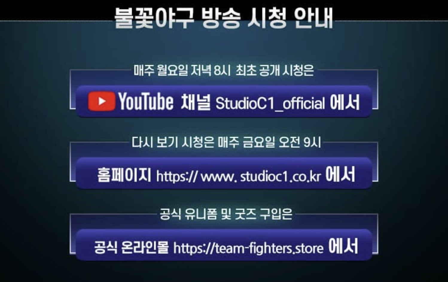 불꽃야구 관련 티켓 예매, 굿즈 판매, 중계 채널 등은 시즌 상황에 따라 변동될 수 있습니다.