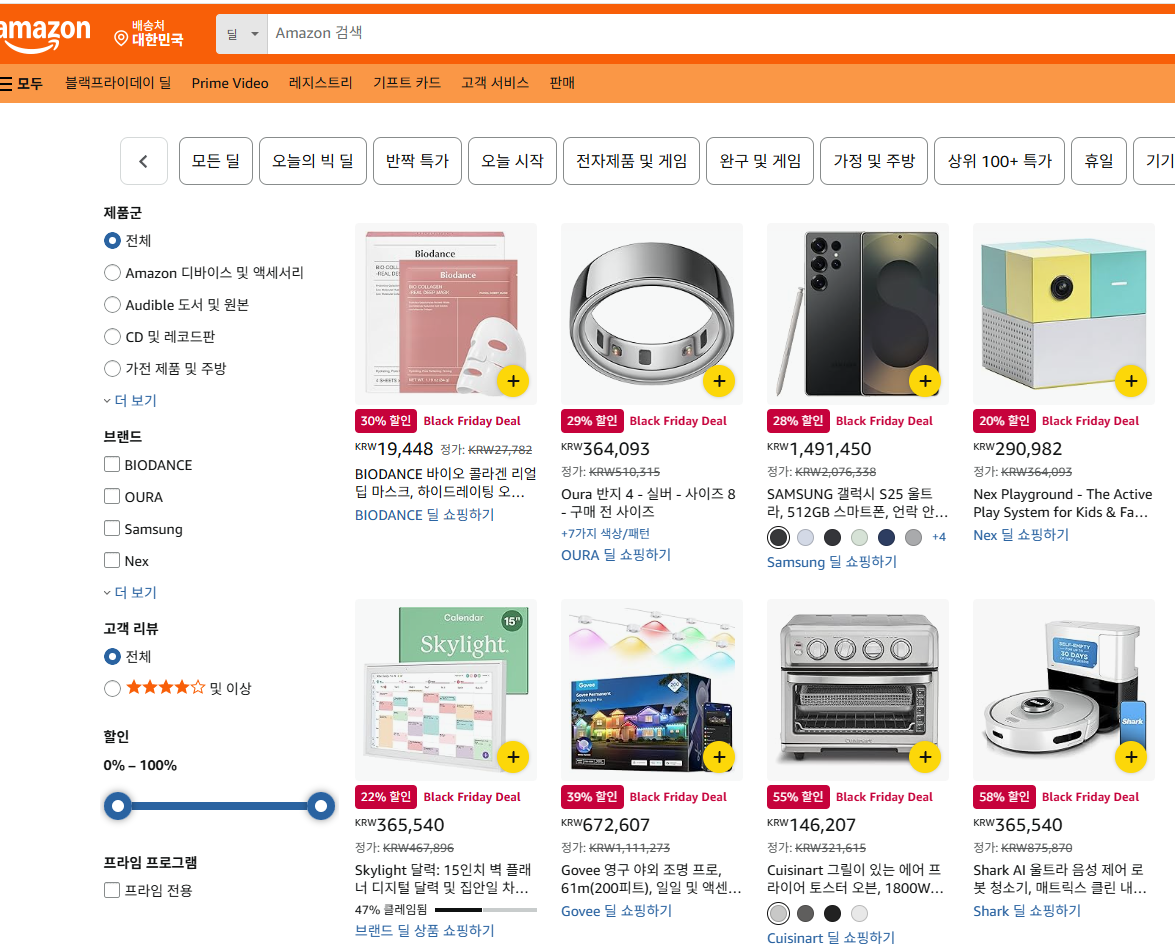 국내 플랫폼을 거치면 조금은 쉽게 해외직구를 할 수 있지만, 해외 아마존이나 미국 브랜드 공식 홈페이지에서만 제공되는 혜택도 있어요. 전자기기나 스마트 디바이스를 노린다면 해외 아마존의 ‘타임딜(Flash Deal)’을 노려보는 걸 추천해요. 나이키·룰루레몬·리바이스 같은 글로벌 스포츠 브랜드도 블랙 프라이데이 시즌 공식 홈페이지 단독 대규모 할인을 진행하는 경우가 빈번하고요