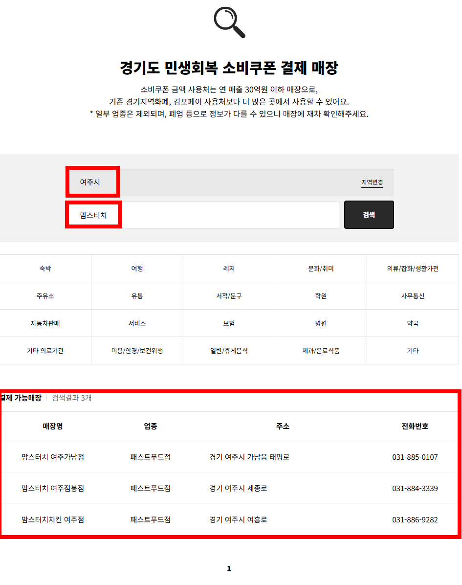 오늘 이렇게 민생 소비 쿠폰 사용가능 한 지역 및 가맹점을 검색해 보았습니다.