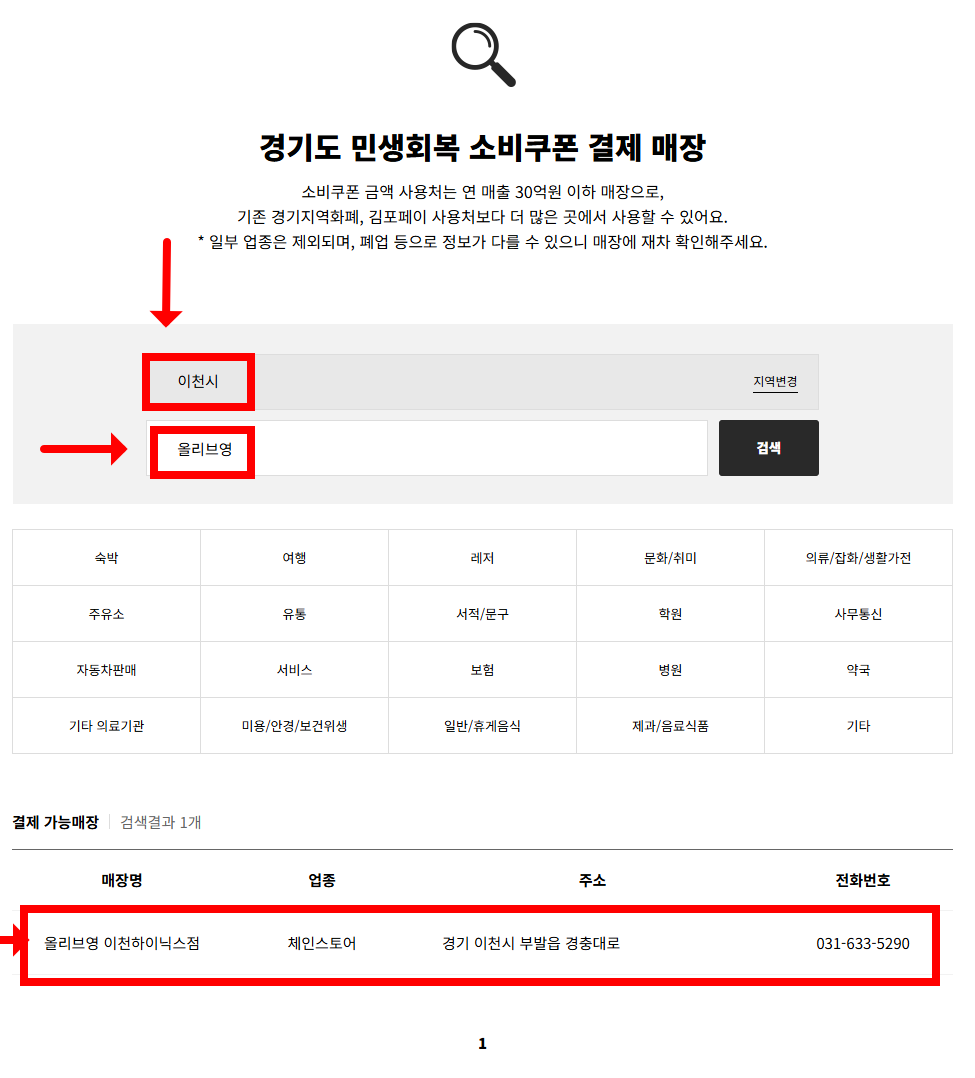 3.경기도 이천시는 올리브영 이천 하이닉스점 민생회복 소비쿠폰 사용 가능 매장으로 나옵니다.