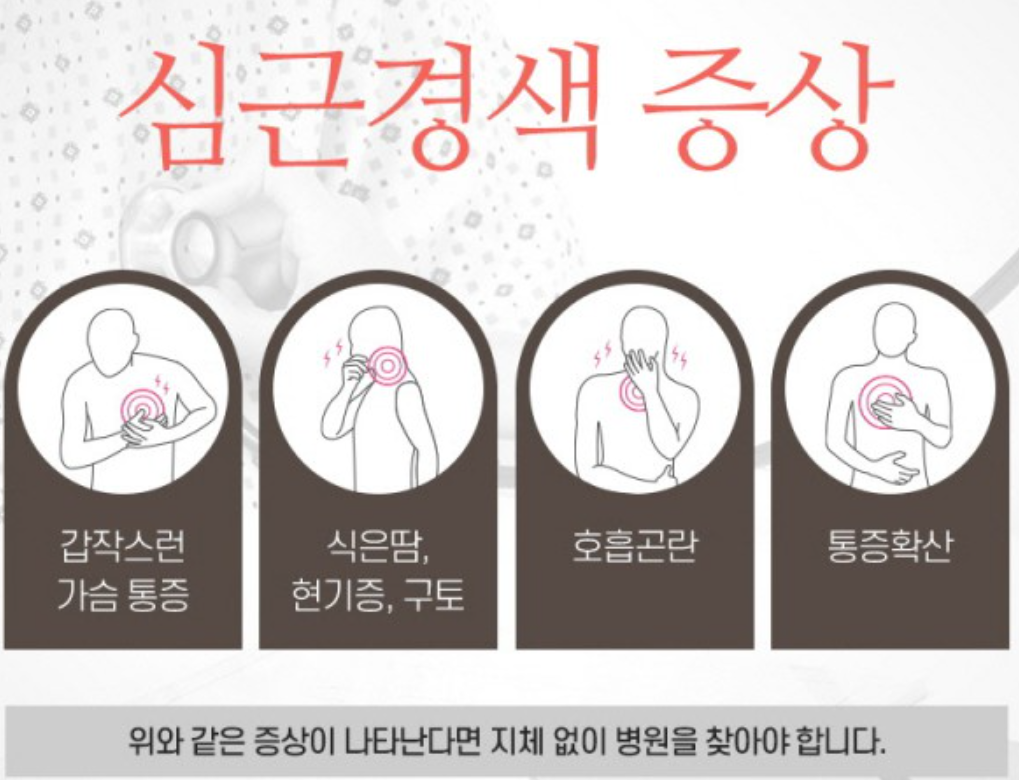 - 특히 가슴통증이 없더라도 위장 이상감, 소화불량처럼 느껴지는 증상이 있다면 심근경색 전조일 가능성을 열어두어야 합니다.