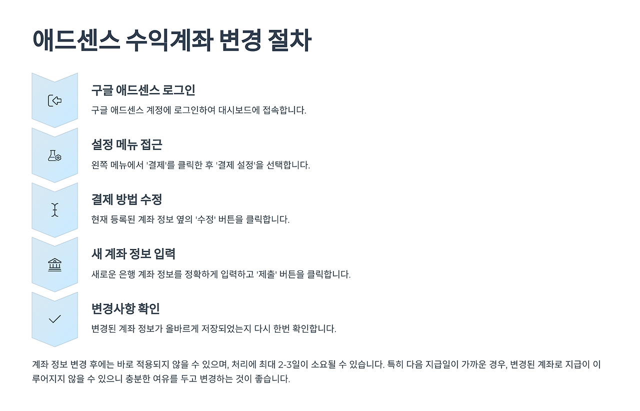 🔎 애드센스 수익계좌 변경 절차 요약표