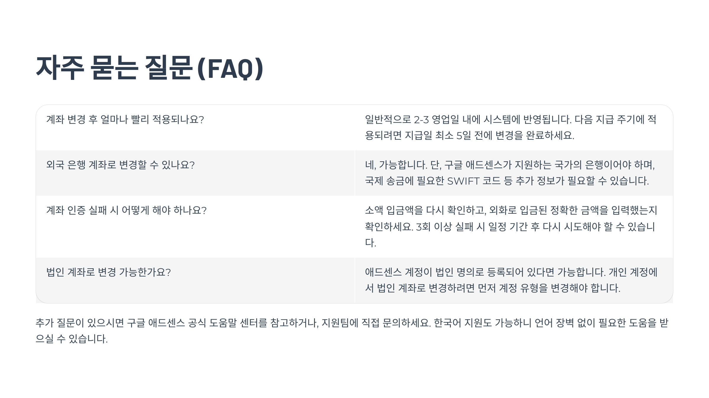 이외에도 국가별 규정이나 은행 정책에 따라 예외 상황이 발생할 수 있어요. 공식 애드센스 포럼이나 지원센터를 적극 활용하면 도움이 된답니다. 🤗