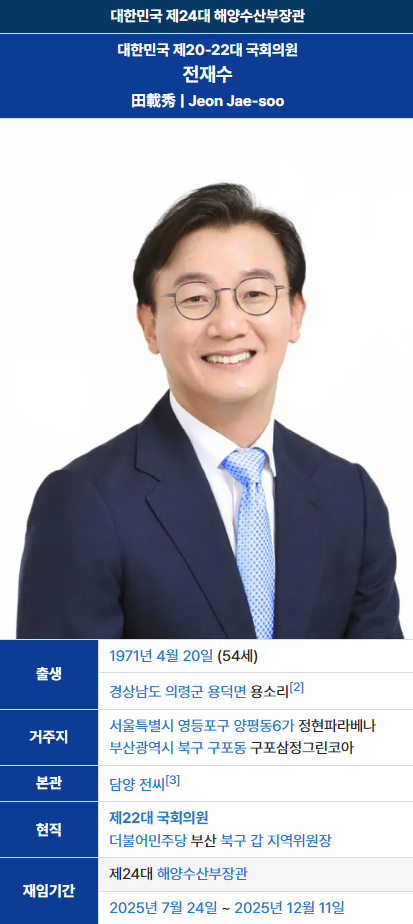 이름: 전재수 (Jeon Jae‑soo, 전재수)