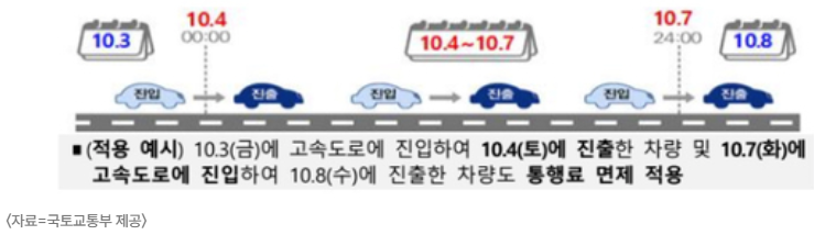 - 면제 기간 예: 10월 4일(토) ~ 10월 7일(화) 등 4일간