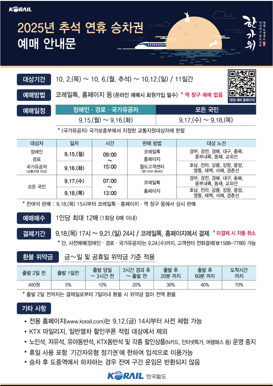 “떨어져 있는 가족과 함께하는 그리운 시간이기 때문에, 추석기차 예매는 치열하죠. 잘 준비하셔서, 가는 길에도 편안한 마음, 오는 길에도 포근한 추억이 함께 하길 바랍니다.”