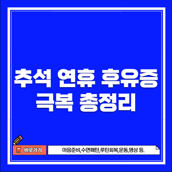 추석 연휴 후유증은 누구나 겪을 수 있는 자연스러운 현상입니다.