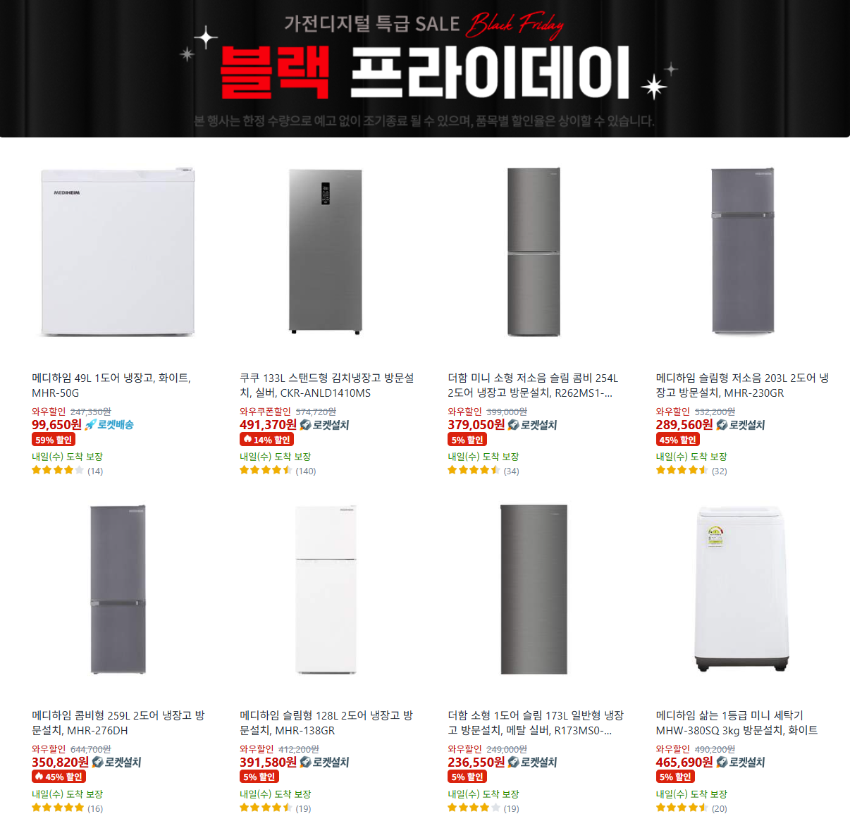 (윗 내용은 별점 4점 이상을 기준으로 체크 했는데, 대부분 냉장고 위주네요^^)