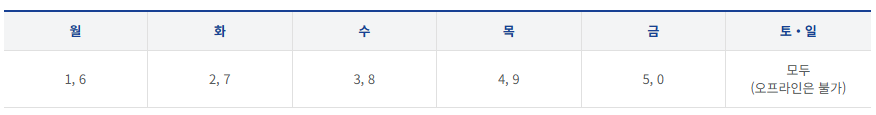 첫 주는 요일제가 적용되어 출생년도 끝자리에 따라 신청 가능한 요일이 다릅니다.