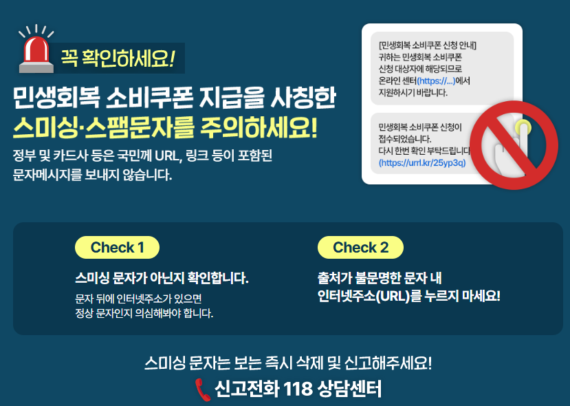 그리고, 스미싱 / 스팸 문자 주의 하시구요..