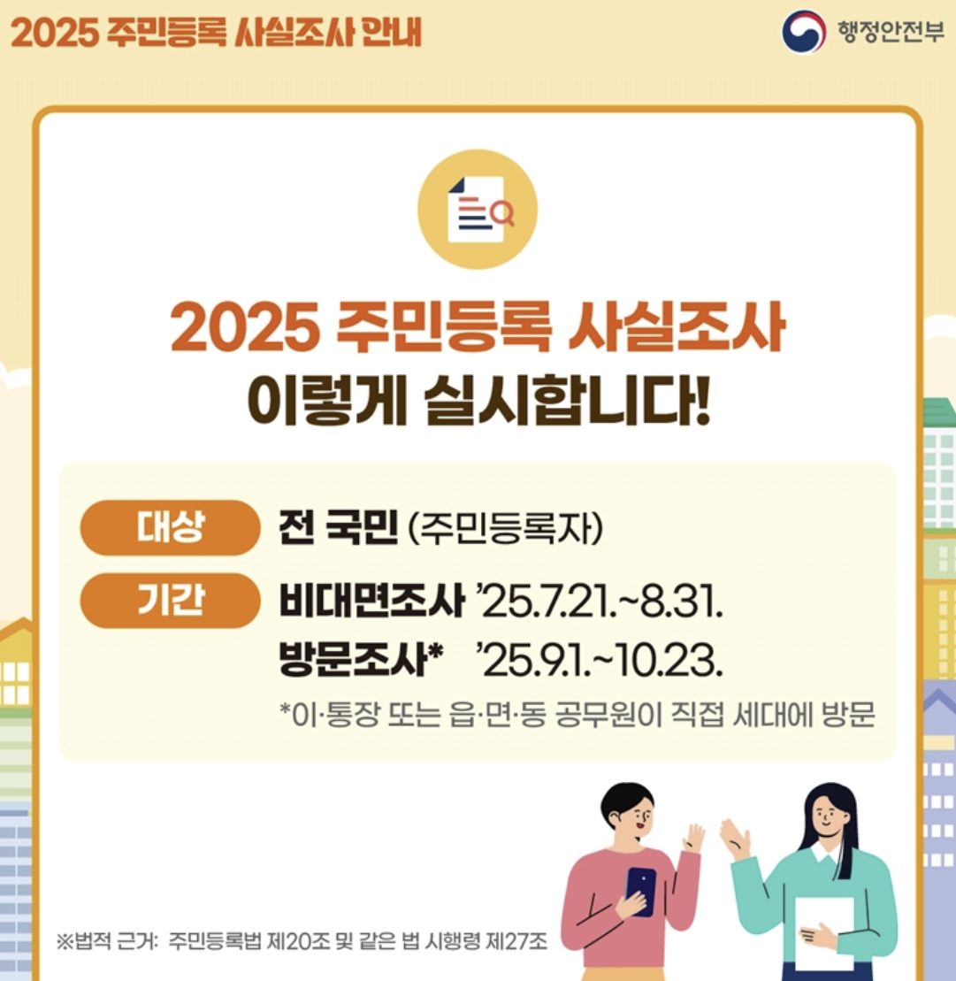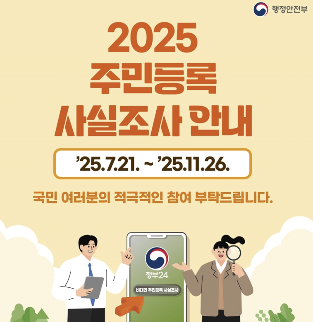 2025 주민등록 사실조사는 행정안전부 주관으로 전국적으로 시행되며