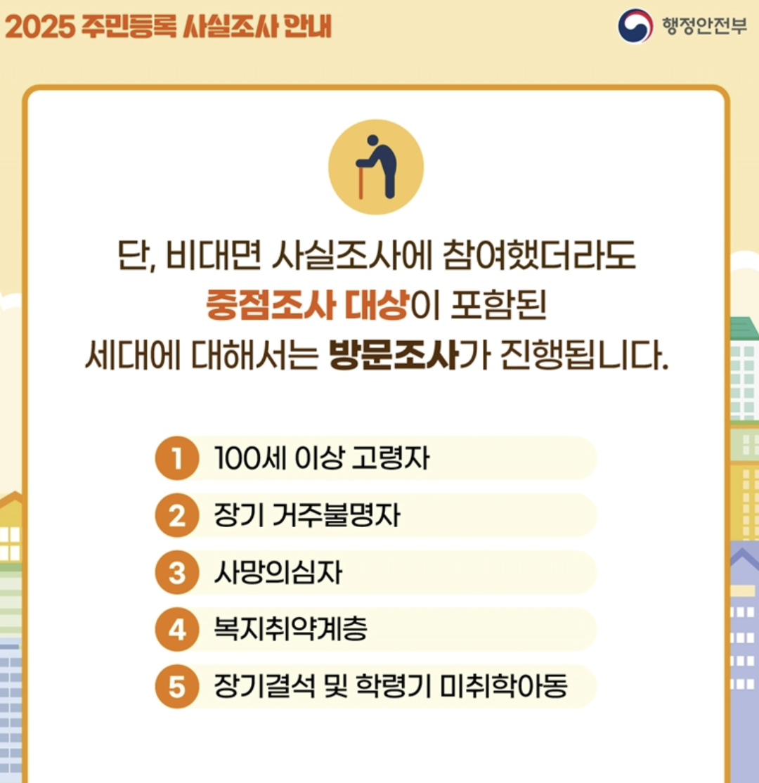 2025 주민등록 사실조사는 전국 모든 세대를 대상으로 실시됩니다.