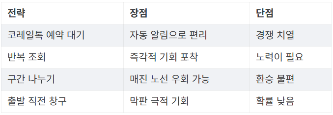 A2. 예약 대기는 효과적이지만 명절 기간에는 경쟁이 치열해 직접 조회를 병행하는 것이 좋습니다.