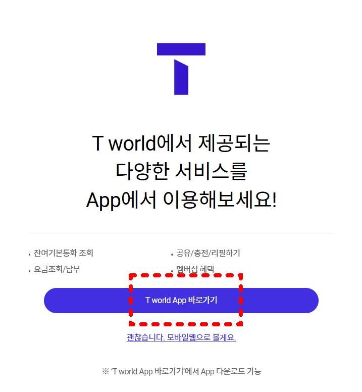 여기를 눌러 T world로 이동하세요.
